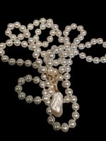 Each necklace is hand-knotted with gorgeous pearls and finished with a show-stopping baroque pendant (yes — it’s detachable!).