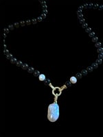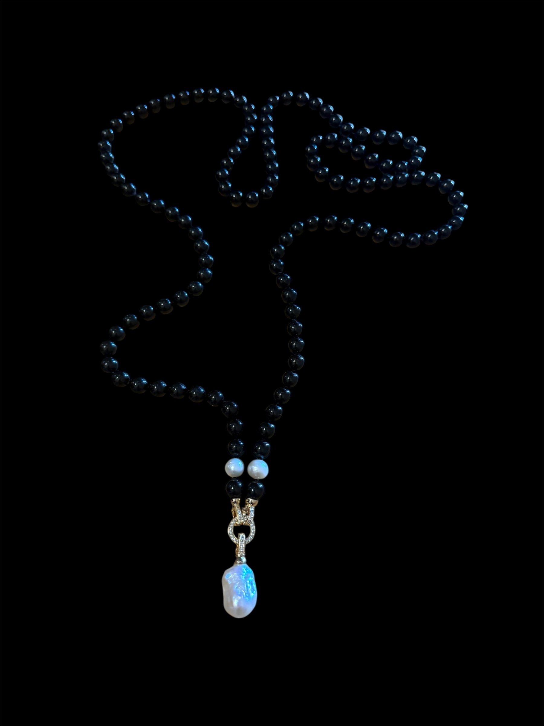 Crossbody Onyx and Baroque Pearl Necklace