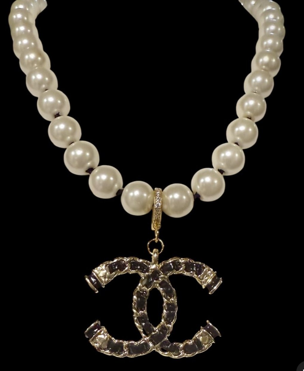 The “COCO” Upcycled CC Charm Pearl Necklace