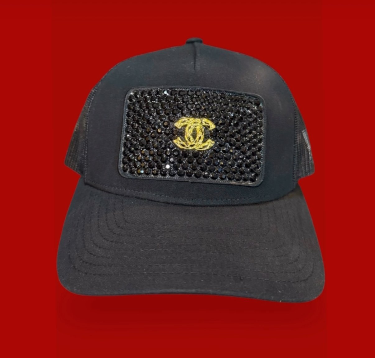 All Handset Rhinestones and Metal Charm Patch. Hat Colors Black Black and White Charm Colors Gold Silver 1 WEEK