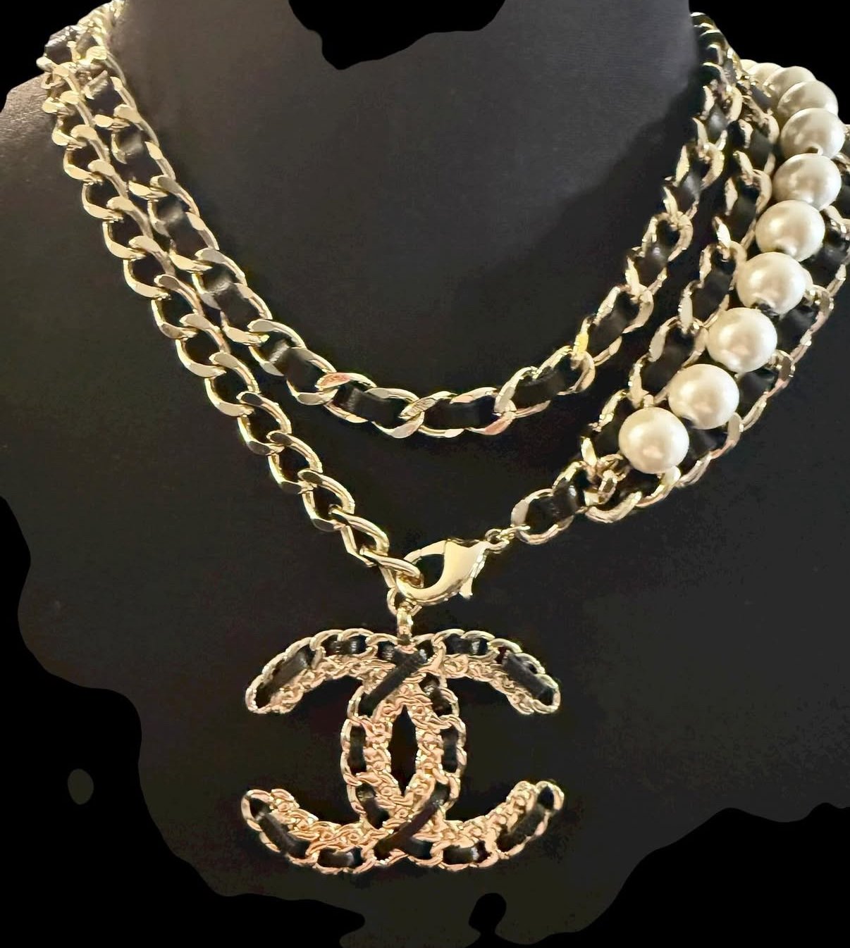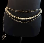 This bold piece mixes woven chain, lustrous pearls, and a large upcycled statement charm for maximum impact. Wear it around your neck in multiple ways… or rock it as a chic belt for a totally unexpected twist. 💫