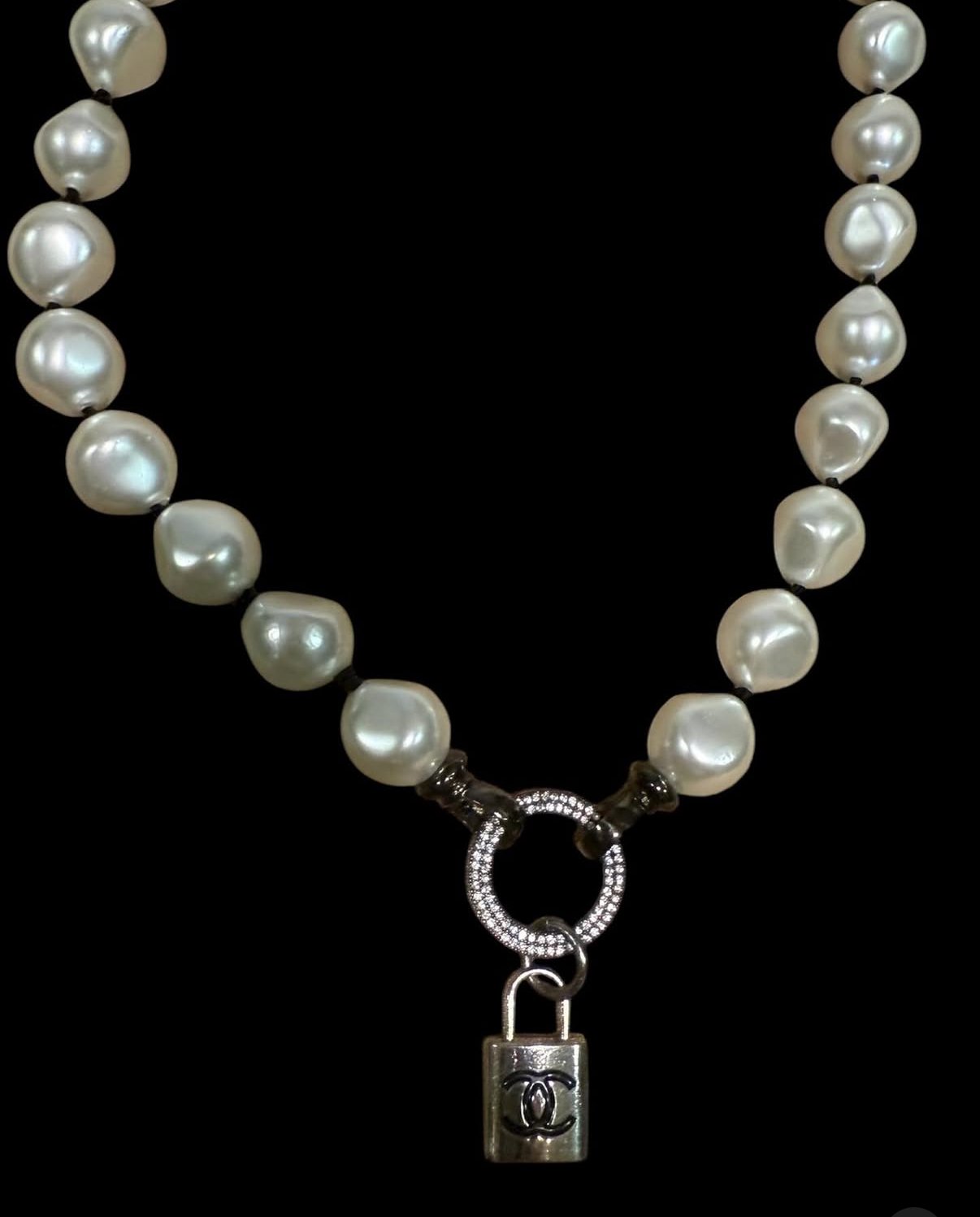 Upcycled CC lock on a Gunmetal Pave Clasp.