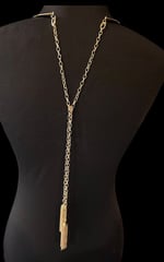 The “VALENTINA” Hard Metal Wire Choker — sleek in the front, statement in the back. Features a removable pearl charm at the front and cascading chain tassels at the back, secured with carabiner clasps. Every charm and chain is fully detachable, so you can mix, match, and style it with other SHOP LUXE pieces.